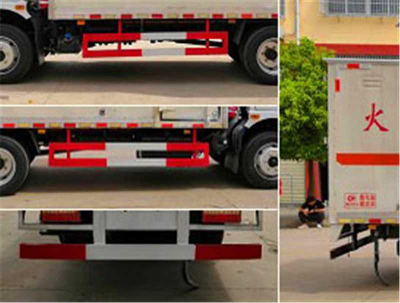 其它 | 該車適用于運(yùn)輸危險(xiǎn)品。廂體頂部封閉,不可開(kāi)啟。選裝右側(cè)箱體不開(kāi)門,選裝側(cè)門型式及位置。危險(xiǎn)貨物運(yùn)輸車輛的類型(EX/Ⅲ型車輛)。僅采用底盤子午線輪胎和帶ABS的底盤,該車前輪安裝盤式制動(dòng)器,前置排氣管,裝配限速裝置,限速80km/h。安裝帶有衛(wèi)星定位功能的行駛記錄儀。安全裝置為導(dǎo)靜電帶,用于防止靜電。防護(hù)材料:Q235B碳鋼,連接方式:左右側(cè)面及后下部防護(hù)均采用焊接連接,后部防護(hù)斷面尺寸(mm):120×50,后部防護(hù)離地高度(mm):500。整車長(zhǎng)/軸距/后懸對(duì)應(yīng)關(guān)系為(mm):7150/4050/1970,7150/3950/2070,7100/3800/2170。運(yùn)送爆炸品的品名:黑火藥,壓縮黑火藥,電(非電)引爆雷管,爆破炸藥,導(dǎo)爆索,點(diǎn)燃導(dǎo)火索。運(yùn)送爆炸品的項(xiàng)號(hào):1.1D,1.1D,1.1B,1.1D,1.4G.1.4G。CY4SK261/CY4SK361/D25TCIF1/D30TCIF1/D40TCIF1/NV30-C6D/YCY30165-60/YCS04190-68發(fā)動(dòng)機(jī)油耗值分別為21.3/21.3/21.3/21.3/21.4/21.4/21.3/21.4(L/100km)。ABS型號(hào)/廠家:ABS型號(hào):ABS/ASR-24V-4S/4M,廠家:襄陽(yáng)東風(fēng)隆誠(chéng)機(jī)械有限責(zé)任公司。隨底盤選裝駕駛室。 | ||