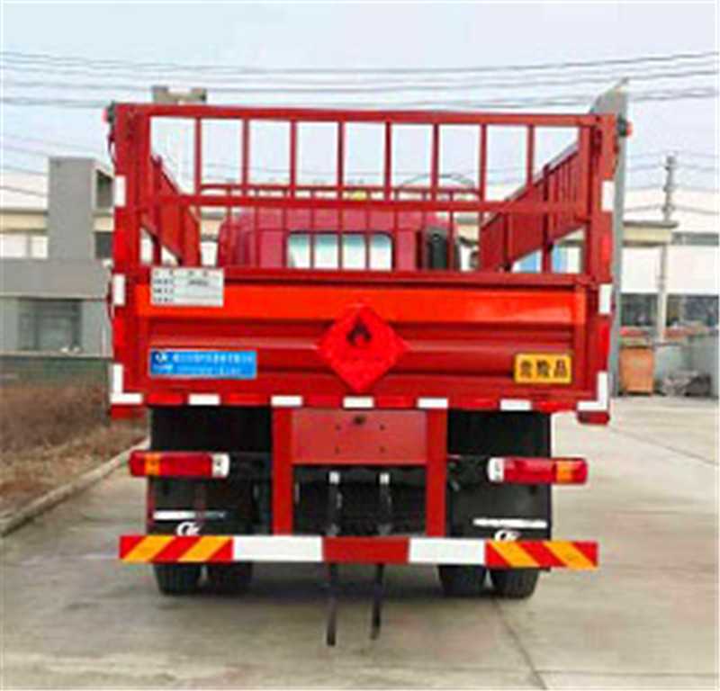 其它 | 該車適用于運輸危險物品為?;愤\輸車。主要用于運輸具有獨立容器(瓶)包裝的液化石油氣,丁烷,乙炔,乙烷,丙烷,丁烯,打火機或打火機加油器,二氧化碳,壓縮氧(氮,空氣,氦,氬,氖),類項號:2.1,2.2。該車運輸的介質為2.1項易燃氣體時,車輛采用”易燃氣體”標識牌,運輸的介質為2.2項非易燃無毒氣體時,車輛采用”不燃氣體”標識牌。整車長度/軸距/后懸對應關系為(mm):8500/5250/1960,8500/4800/2410,8500/4500/2710,8500/5100/2110。該車安裝帶有衛星定位功能的行駛記錄儀,僅采用前盤制動器和安裝ABS以及前置消聲器的底盤,采用子午線輪胎,前置排氣管,安裝限速裝置,限速80km/h。專用裝置為固定用卡槽。側防護和后防護裝置材料材質為Q235A碳鋼,側防護與箱體底部焊接連接,后防護裝置與車架采用焊接連接。后防護截面尺寸(mm):120×50,離地高度為500mm。發動機WP4.6NQ220E61對應的油耗值(L/100km)為:25.89。ABS型號為CM4XL-4S/4M,生產廠家為廣州瑞立科密汽車電子股份有限公司。 | ||