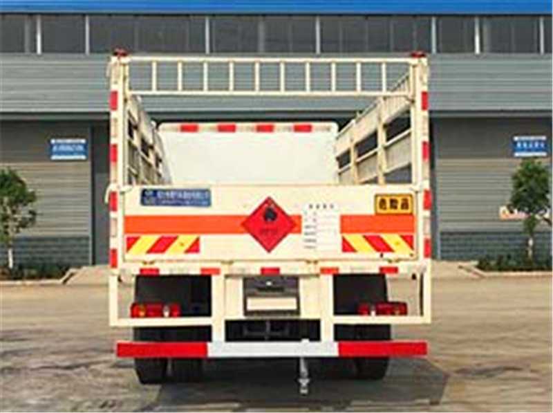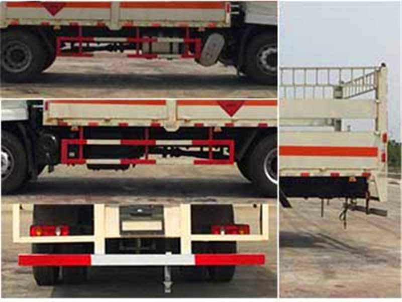 其它 | 該車適用于運(yùn)輸危險(xiǎn)物品為危化品運(yùn)輸車。主要用于運(yùn)輸具有獨(dú)立容器(瓶)包裝的液化石油氣,丁烷,乙炔,乙烷,丙烷,丁烯,打火機(jī)或打火機(jī)加油器,二氧化碳,壓縮氧(氮,空氣,氦,氬,氖),類項(xiàng)號:2.1,2.2。該車運(yùn)輸?shù)慕橘|(zhì)為2.1項(xiàng)易燃?xì)怏w時,車輛采用”易燃?xì)怏w”標(biāo)識牌,運(yùn)輸?shù)慕橘|(zhì)為2.2項(xiàng)非易燃無毒氣體時,車輛采用”不燃?xì)怏w”標(biāo)識牌。整車長/軸距/前懸/后懸對應(yīng)關(guān)系為(mm):9000/5000/1430/2570, 8600/4700/1430/2470,該車安裝帶有衛(wèi)星定位功能的行駛記錄儀,僅采用前盤制動器和安裝ABS以及前置消聲器的底盤,采用子午線輪胎,前置排氣管,安裝限速裝置,限速80km/h。安全裝置為導(dǎo)靜電帶,用于防止靜電。側(cè)防護(hù)和后防護(hù)裝置材料材質(zhì)為Q235B碳鋼,側(cè)防護(hù)與箱體底部焊接連接,后防護(hù)裝置與車架采用焊接連接。后防護(hù)截面尺寸(mm):140×50,離地高度為500mm。ABS型號:3631010-C2000,ABS 8;ABS生產(chǎn)廠家:東科克諾爾商用車制動系統(tǒng)(十堰)有限公司。 隨底盤選裝駕駛室前面罩,選裝側(cè)窗玻璃;駕駛室頂部中間三個裝飾燈為選裝件;前霧燈為選裝件;駕駛室前臉擾流罩為選裝件。 | ||